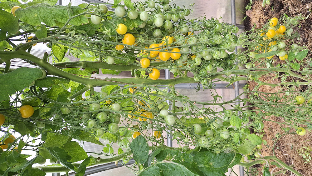 Необыкновенное зрелище представляет собой куст этих помидор. Длинные кисти с плодами янтарного цвета диаметром 2 см, на каждой кисти до 20 таких плодиков. Угостила соседку , так она описала свои ощущения, что с этими помидорами можно чай пить вместо сахара.