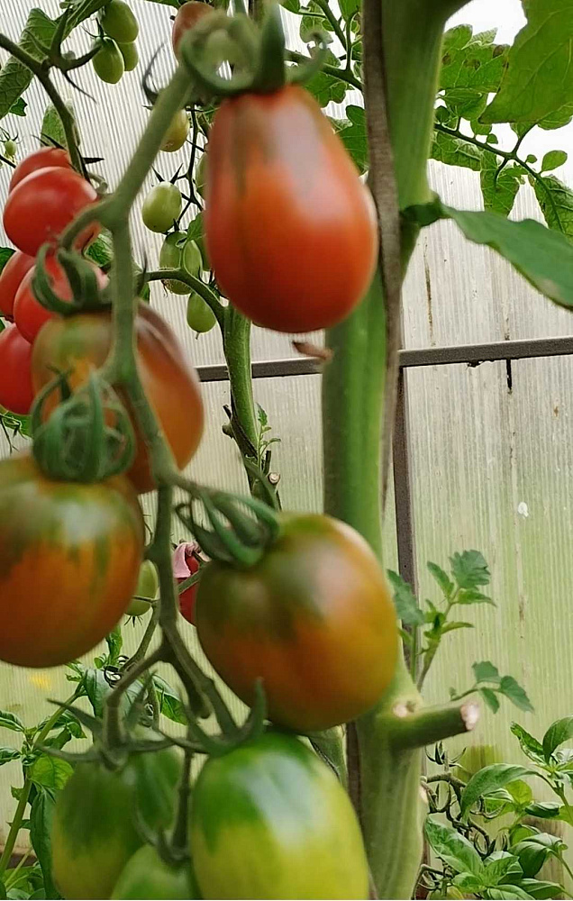 Сажала в 2025 году все четыре сорта Де Барао самый лучший оказался чёрный, красный то же не плохой, а золотой полное разочарование. Куст здоровый , а завязей и плодов мало и очень мелкие. Я его в середине августа убрала из теплицы. В этом году буду сажать только чёрный и красный. На вкус чёрный понравился больше остальных, розовый почему-то трескался на корню, даже зелёные помидоры.