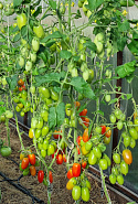 У детерминантных помидоров необходимо удалить до первой плодной кисти все пасынки и листья. Выше плодной кисти не удаляют все пасынки, а регулируют их количество. Кроме основного ствола, рекомендуется оставить еще 2-3 самых сильных пасынка, именно на них и будет формироваться основной урожай томатов. Многие детерминантные помидоры, высотой до 2 метров, отлично плодоносят, если их ведут в два ствола. Соцветия у них закладываются через каждые 2-3 листа.