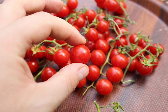 Самый мелким томата в мире. Невероятно обсыпной, как смородина. Даже его мелкие листья имеют смородиновый аромат! Если не подвязывать, спокойно стелется по земле. Кисти длинные (до 30 см), по 15-20 плодов в каждой. Помидорки ярко-красные очень вкусные, сладкие, с пряными фруктовыми нотками, не склонны к растрескиванию. Сорт раннеспелый, плодоносит длительно и обильно, устойчив ко всем основным болезням томатов. Урожайность высокая. Покажет себя во всей красе как в теплице, так и в открытом грунте. Рекомендуем формирование куста в 3-4 стебля.