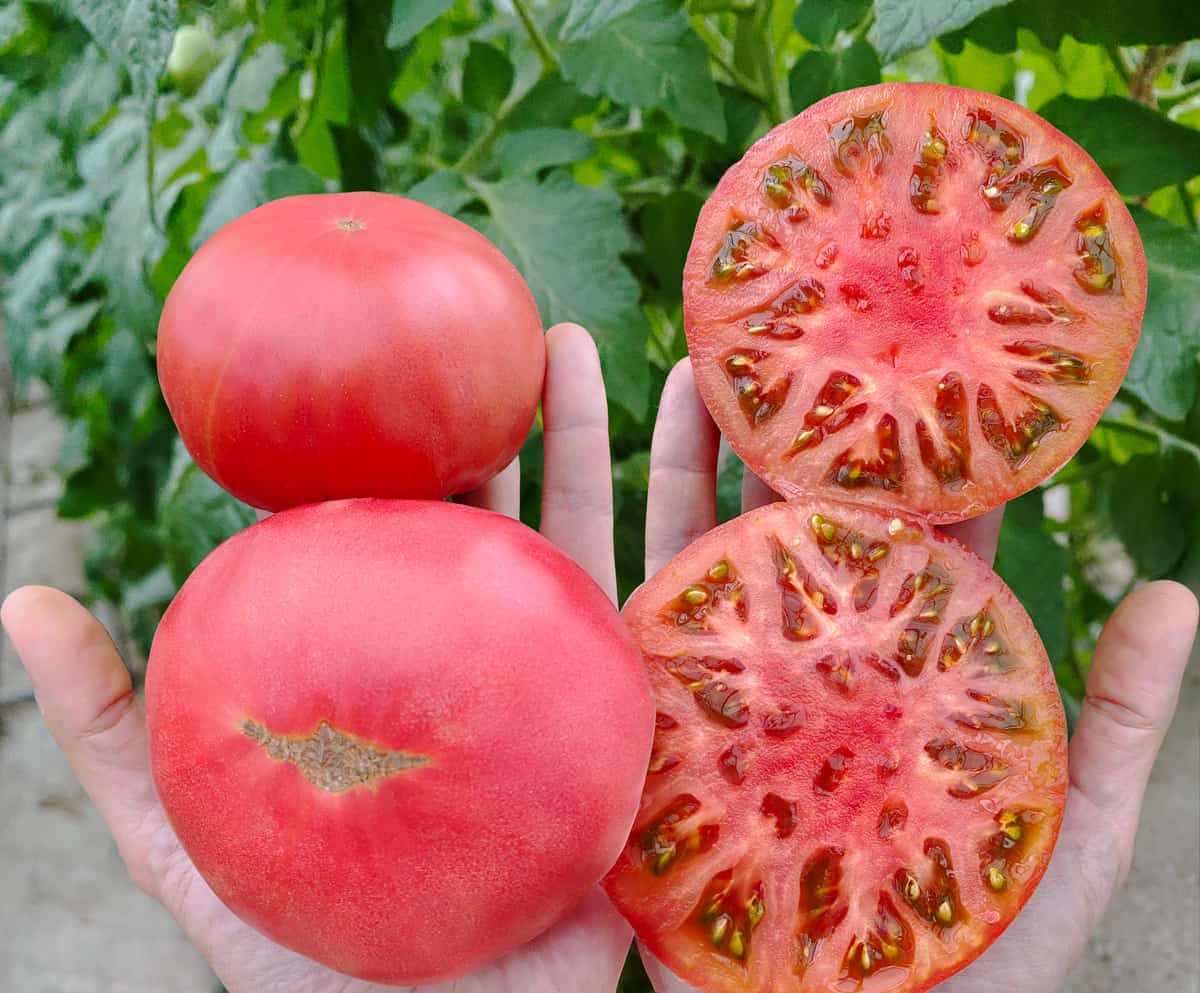 У биф-томатов необходимо регулировать количество завязи в кистях. Всего в кисти нужно оставить 3-4 плода, остальные цветы отщипнуть. Тогда помидор будет действительно крупным.