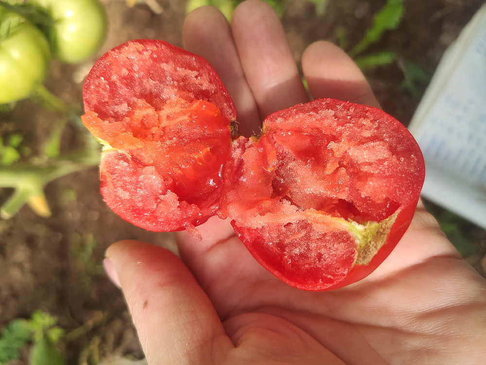 У биф-томатов необходимо регулировать количество завязи в кистях. Всего в кисти нужно оставить 3-4 плода, остальные цветы отщипнуть. Тогда помидор будет действительно крупным.