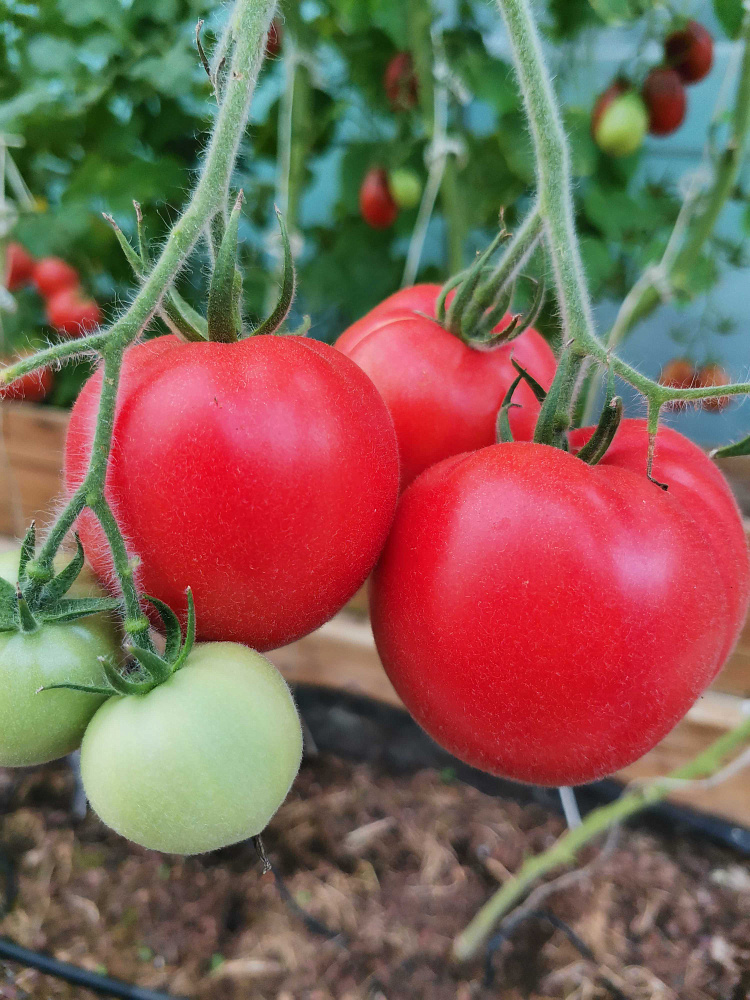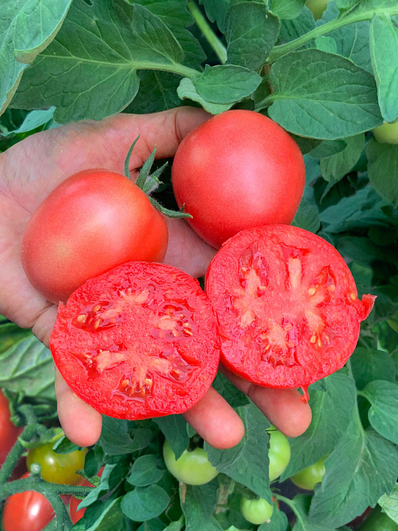 В 2025 году садила Пинк Хайп. Растение действительно красивое. Один куст вела в 3 стебля, другой куст в 2 стебля. Урожайность в обоих случаях хорошая, но у куста, который вела в 3 стебля, помидоры были поменьше. За лето ничем кусты ничем не заболели. Томат плотный, сладкий. На следующий год снова буду садить.