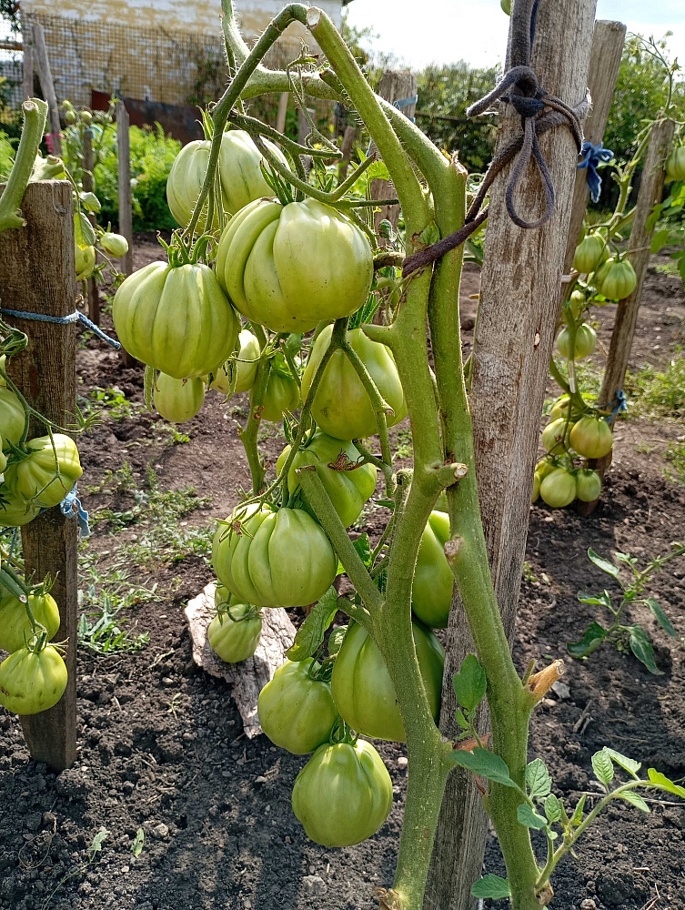 У биф-томатов необходимо регулировать количество завязи в кистях. Всего в кисти нужно оставить 3-4 плода, остальные цветы отщипнуть. Тогда помидор будет действительно крупным.