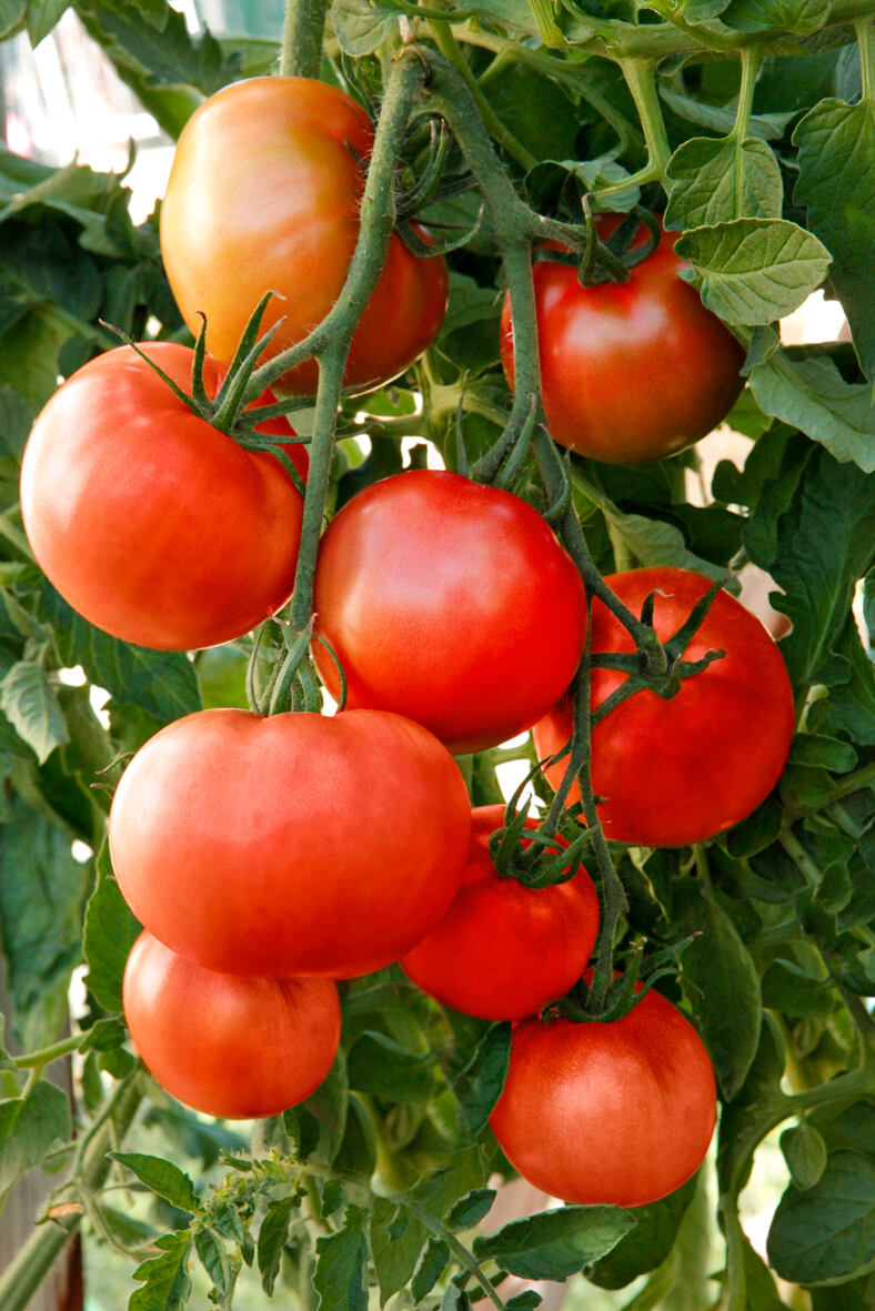 У детерминантных помидоров необходимо удалить до первой плодной кисти все пасынки и листья. Выше плодной кисти не удаляют все пасынки, а регулируют их количество. Кроме основного ствола, рекомендуется оставить еще 2-3 самых сильных пасынка, именно на них и будет формироваться основной урожай томатов. Многие детерминантные помидоры, высотой до 2 метров, отлично плодоносят, если их ведут в два ствола. Соцветия у них закладываются через каждые 2-3 листа.