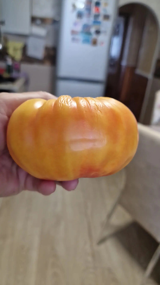 Посадила в первый раз. Очень вкусный и урожайный. Томаты которые созрели в сентябре и октябре дома, выглядели по другому, чем то похожи были на грейпфрут, кожица желтая а мякоть красная. В этом году возьму еще