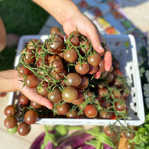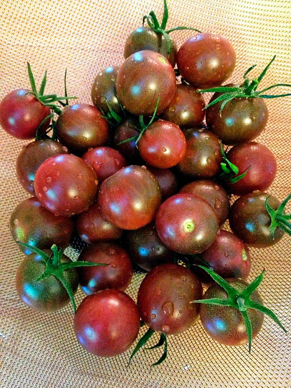 Красивейшие разлапистые кисти из 30 штук и более сладких шоколадных черри. Вкус великолепный, необычный яркий фруктовый, кожица тонкая, мякоть сочная. Кисти с созревшими плодами могут долго без увядания находиться на кустах. Устойчив к основным заболеваниям томатов. Формируем в 2 стебля.
