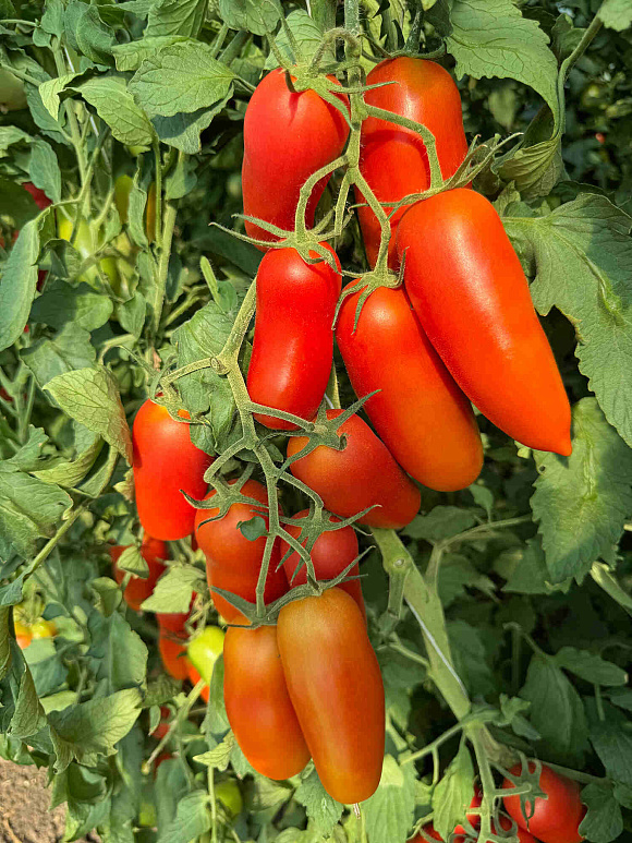 Современный ультраранний гибрид помидора сортотипа «дамские пальчики». Мега урожайный – до 20 кг с куста! Плоды ярко-красные, удлиненно-сливовидные, необычайно вкусные. Гибрид индетерминантный. Устойчив к жаре, вершинной гнили и вирусу табачной мозаики.