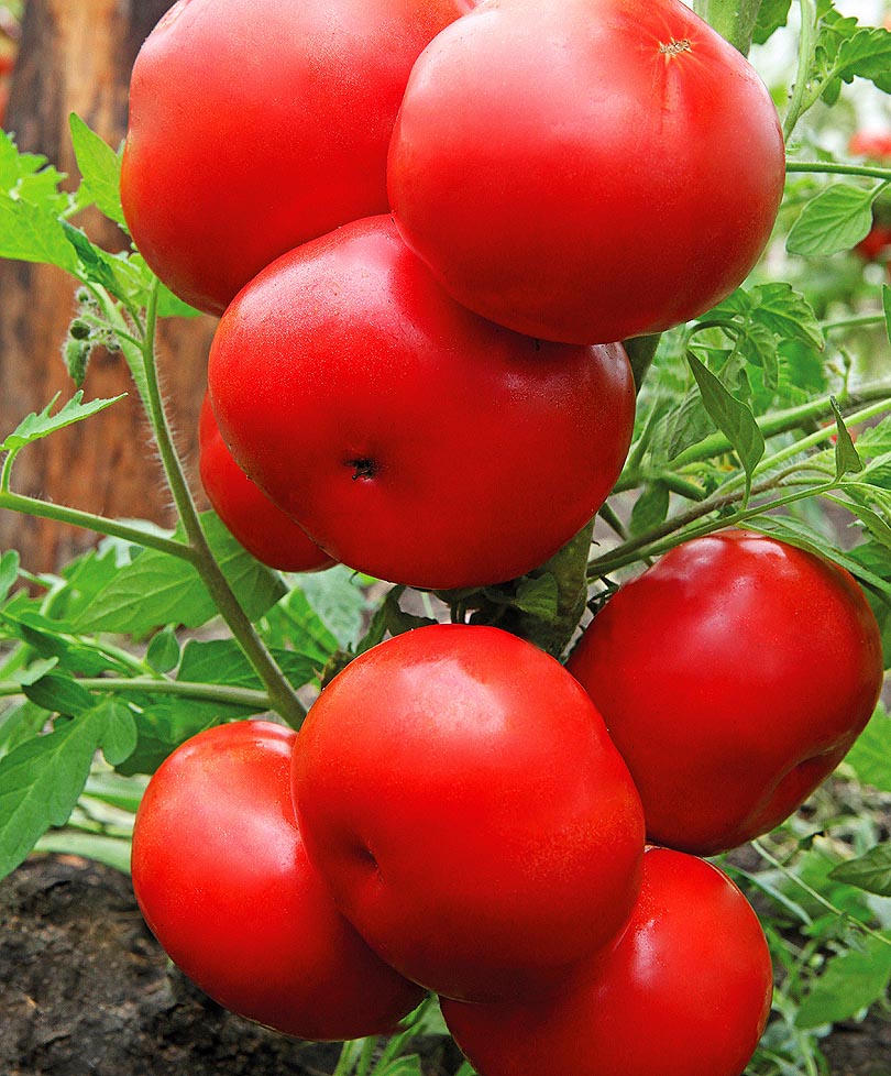 У биф-томатов необходимо регулировать количество завязи в кистях. Всего в кисти нужно оставить 3-4 плода, остальные цветы отщипнуть. Тогда помидор будет действительно крупным.