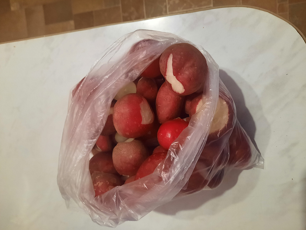 Собрали урожай редиса, крупный , сочный, мягкий, очень понравился.