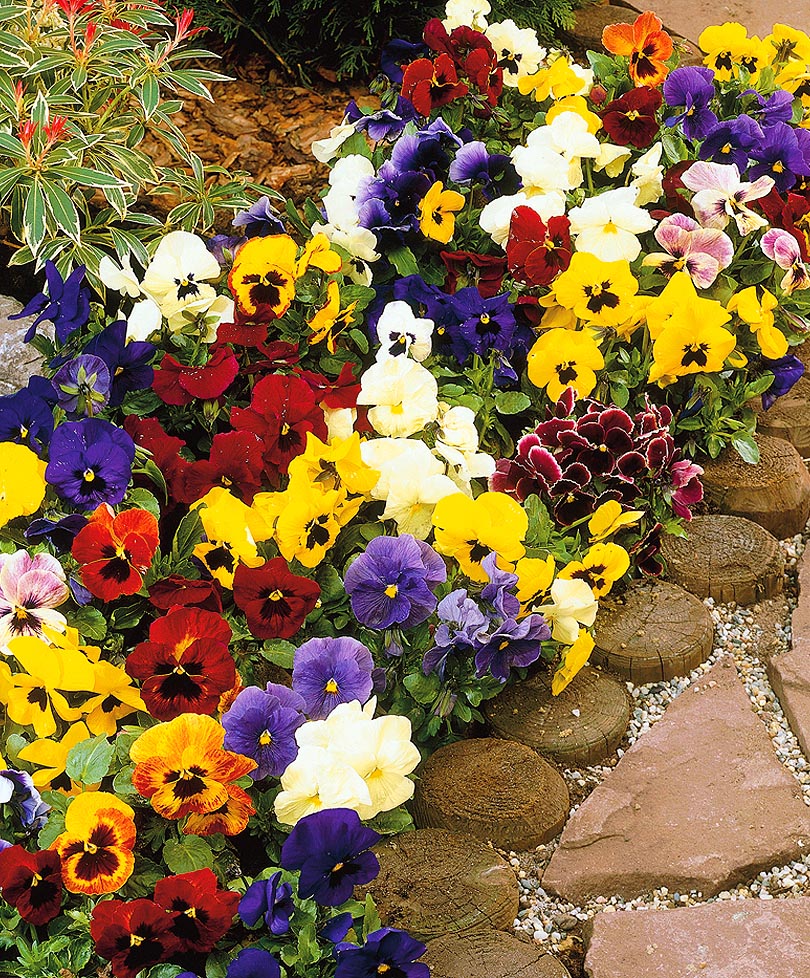 Великолепные крупноцветковые гибриды фиалки трёхцветной самых разнообразных ярких окрасок. Цветки все как на подбор, крупные, очень выразительные, в любую погоду нарядные, улыбчивые и привлекательные. Высота 15 см.