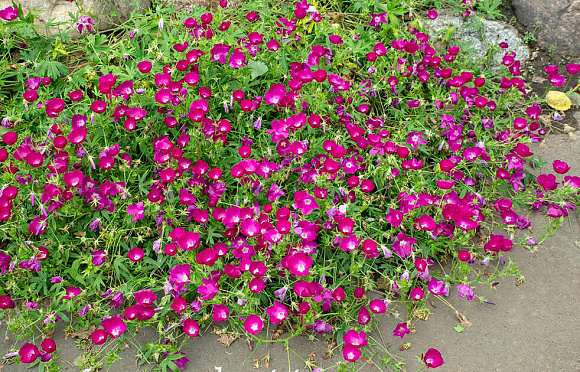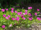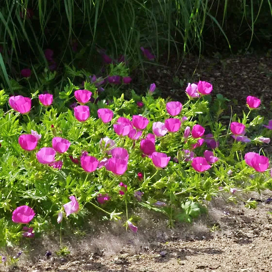 Очаровательный почвопокровный многолетник семейства мальвовых с очень обильным цветением. Цветки очень эффектные одиночные, до 6 см в диаметре, цвета фуксии, по форме напоминают чашечку, раскрываются утром и закрываются с наступлением вечера. Листья темно-зеленые, глянцевые. Стебли длинные, полегающие. В ширину разрастается до 90 см. Зимой отмирают и по весне отрастают заново. Полностью зимостойко.