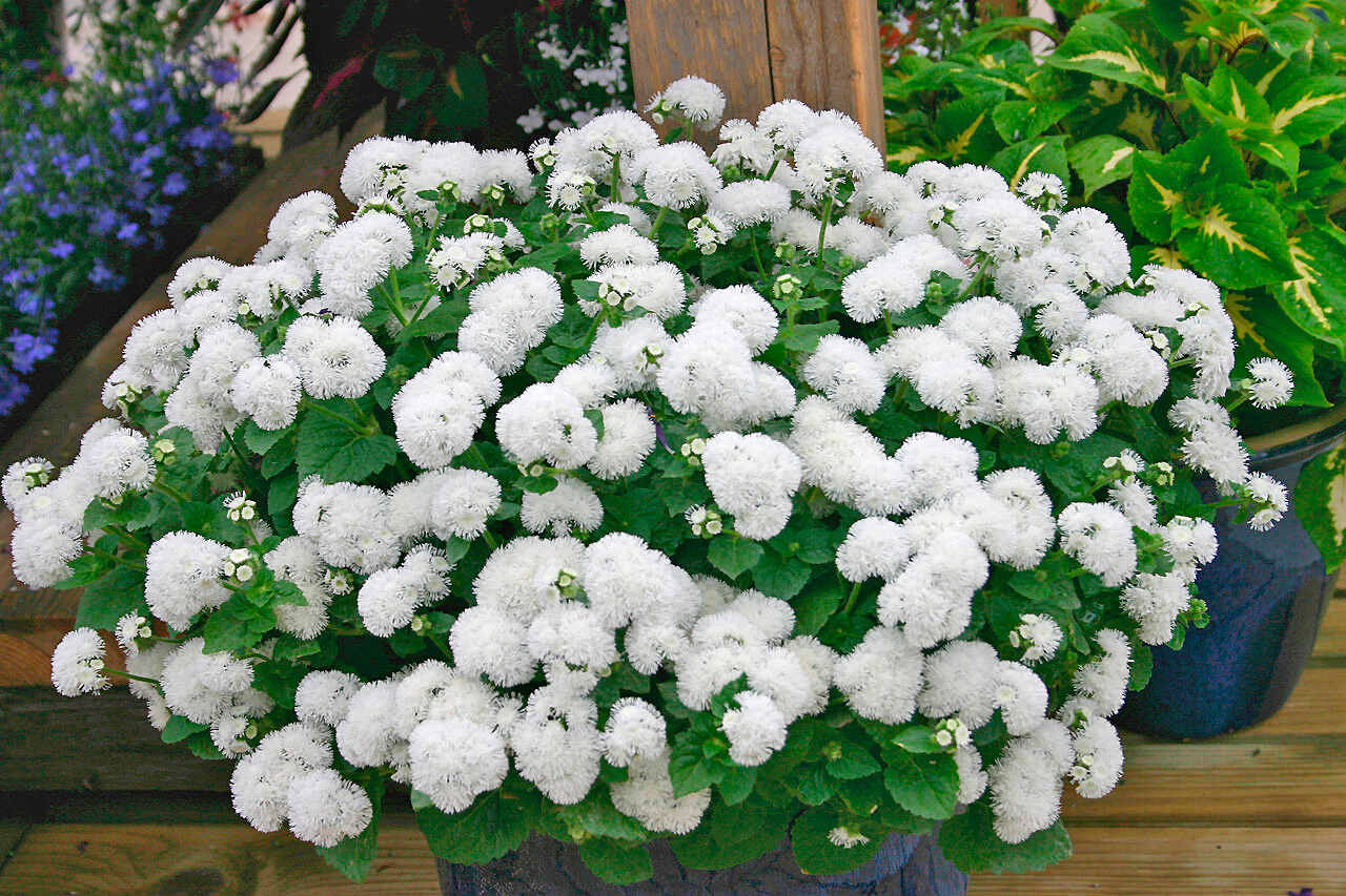 Агератум – цветок из семейства астровых, но в отличии от астры он не холодостоек, а теплолюбив. Цветет он необычайно обильно и длительно, так же как и астры, но только до первых заморозков. Гибридный агератум отличается ранним, обильным и продолжительным цветением, выровненностью по высоте и расцветке, по сравнению с сортами. Растут гибриды агератума очень быстро, они необыкновенно устойчивы к болезням и вредителям, на ваших глазах превращаются в компактные кустики одинаковой высоты и интенсивной яркой окраски. Использовать агератум можно как для оформления цветников, бордюров, балконных ящиков, так и для самостоятельных посадок. Агротехника его выращивания незначительно отличается от выращивания астр и точно так же как и у астр, очень проста. Стратификации холодом семена агератума не подвергают. Перед посевом выдерживают их не менее 2 х – 4 х недель при комнатной температуре + 23°С - + 25°С.