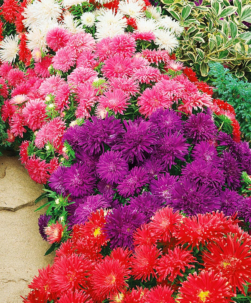ВЫСАДКА РАССАДЫ АСТРЫ В ЦВЕТНИКИ. Астра – холодостойкий цветок и высаживать ее в цветники и клумбы у нас на Урале можно уже после 20 – 25 мая. Южанам и того раньше, в конце апреля в начале мая. Грунт под астры нужен легкий, воздушный, хорошо заправленный компостом 2 -3 летней давности фосфорно-калийными удобрениями. Категорически запрещается вносить под астры свежий навоз. Астры нельзя высаживать на то же самое место, где росли астры прошлым летом. Схема посадок: 20 см для карликовых астр между кустами, и 30 – 35 см между высокорослыми кустами. Ведь каждый куст формирует от 12 до 30 (в зависимости от вида) мощных цветоноса, а для этого нужна и площадь питания соответствующая и обеспечение светом. При более тесных посадках астры теряют свою декоративность и вытягиваются, при более просторных посадках кусты не поддерживают друг друга и полегают. В течение вегетации уход за астрами заключается в поливах, прополках, рыхлении и подкормках.
