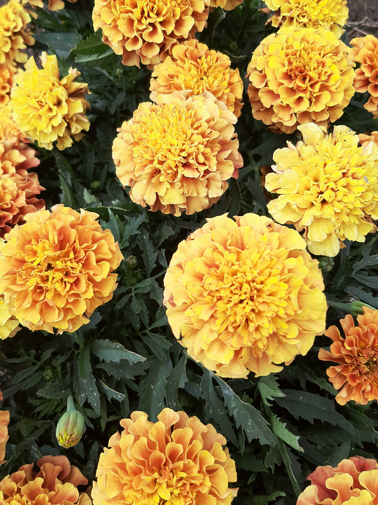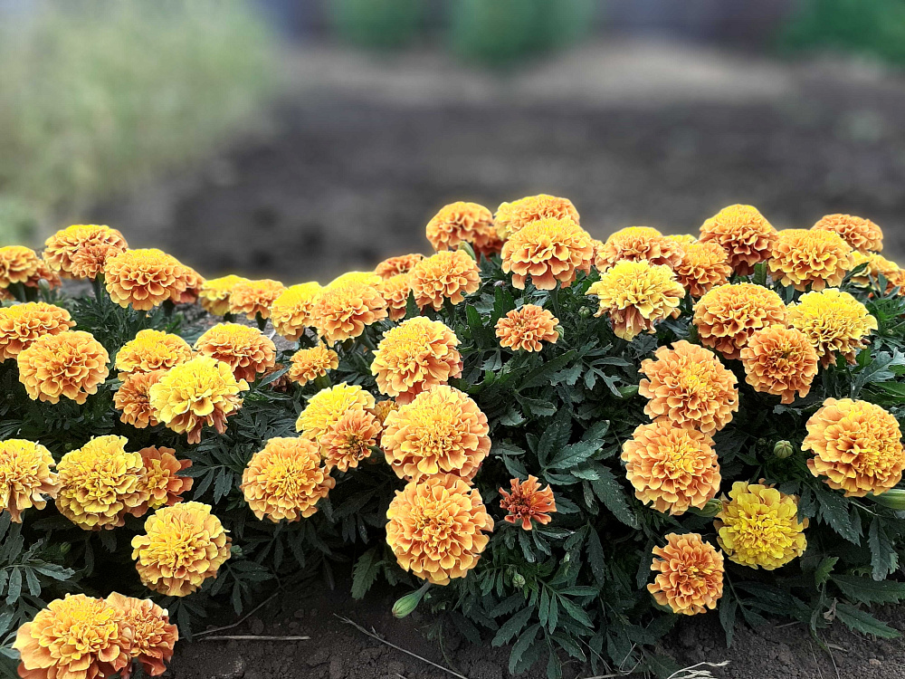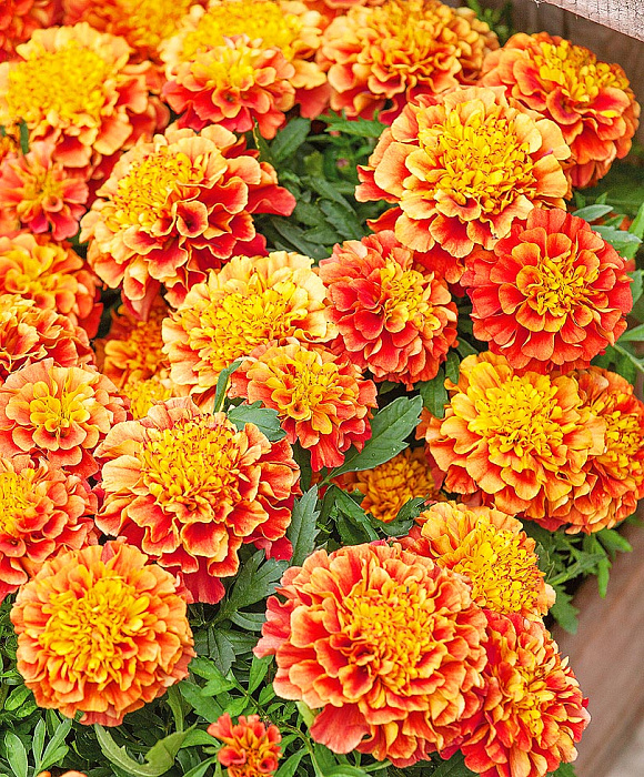Неслучайно бархатцы — фавориты и у садоводов-любителей, и у профессионалов. Легки в выращивании: их можно сеять прямо в грунт. Цветут пышно и ярко до самого снега. Современная селекция предлагает большое разнообразие этих растений как по высоте, так и по форме и размеру цветка.