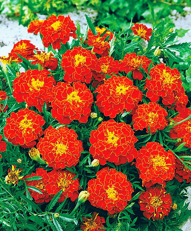 Неслучайно бархатцы — фавориты и у садоводов-любителей, и у профессионалов. Легки в выращивании: их можно сеять прямо в грунт. Цветут пышно и ярко до самого снега. Современная селекция предлагает большое разнообразие этих растений как по высоте, так и по форме и размеру цветка.