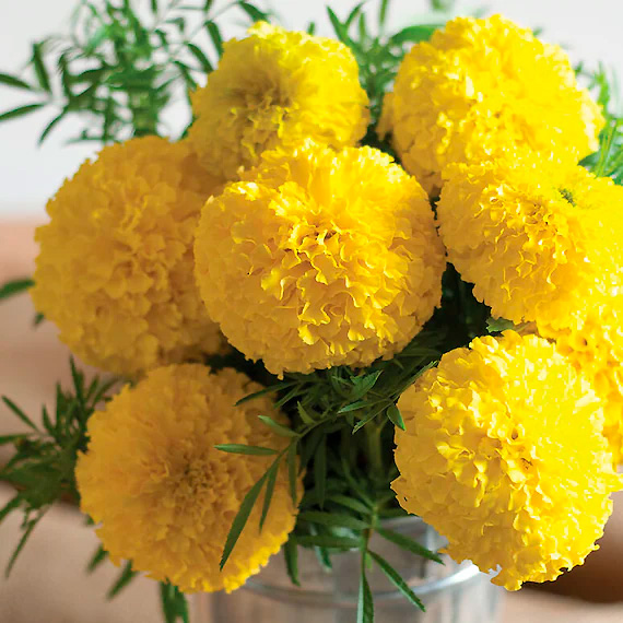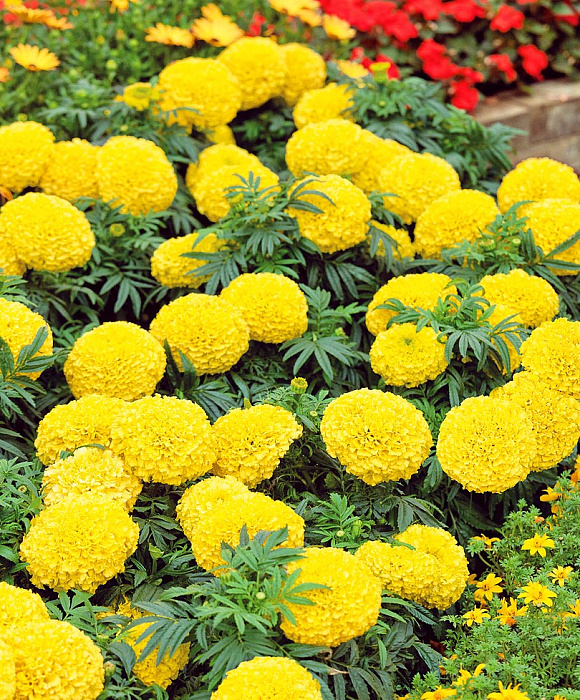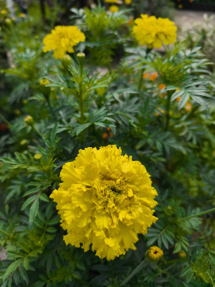 Прекрасные бархатцы, крупные, ярко-жёлтые. Большие, раскидистые, набирали свою силу долго, но у нас было не очень хорошее лето, в целом 5 из 5, сажала их первый раз, неудачно выбрала место посадки, не думала что так вымахают