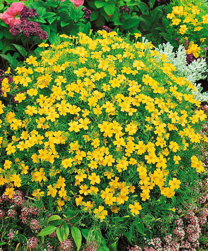 Неприхотливый цветок, хорошо переносит и дожди, и засуху. Сильноветвистые кустики с множеством цветков. Соцветия у этого сорта маленькие. Высота кустиков небольшая, а ветвистость сильная. На одном кусте их очень много!