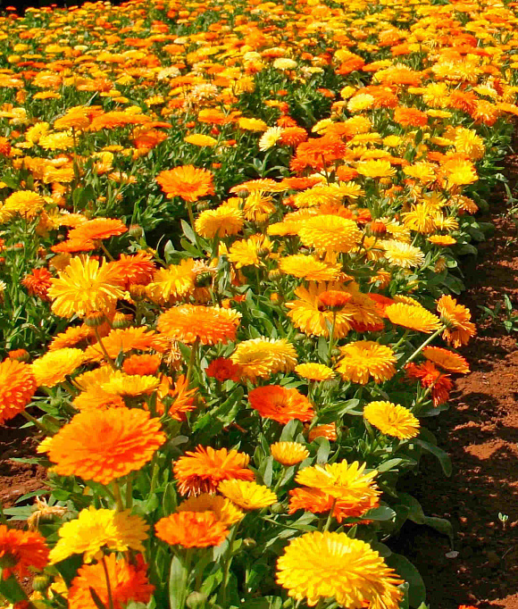 УХОД ЗА ПОСЕВАМИ КАЛЕНДУЛЫ. Так же как и сам посев – «проще не бывает»! Регулярные поливы, прополки, рыхление да раз в две недели полив под корень любым минеральным комплексом. Первый цветки на календуле появляются через 8 - 10 недель после всходов, а сами всходы на 4 -5 дней от посева. Если вам не трудно, то прищипните ей макушки, просто отломите в любой момент, и она начнет обильно куститься, превращаясь в мощный и шикарный куст.