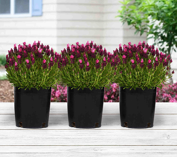 Единственная в своем роде долгоцветущая и самоочищающаяся серия лаванды широколистной, качество которой сопоставимо с качеством вегетативных растений. Цветение необычное двуцветное: множество ярко-розовых, бордовых и темно-фиолетовых колосков украшены на макушке лепестками-перышками. Аромат ярко выраженный сладкий. Кусты компактные, не распадаются и не требуют прищипывания. Растение однолетнее, быстро разрастается. Цветет обильно в год посева.
