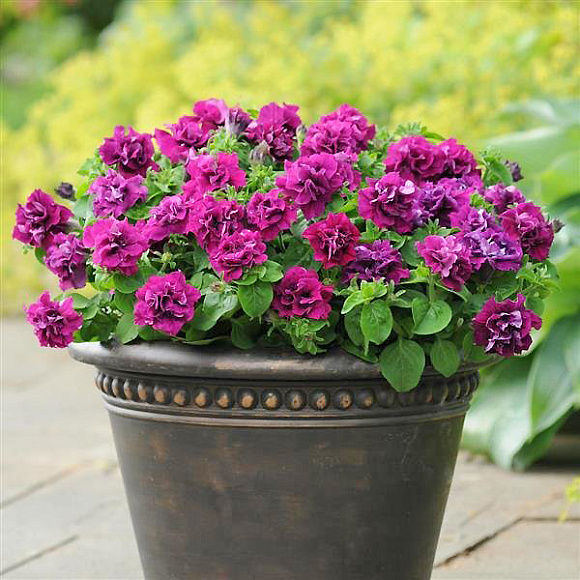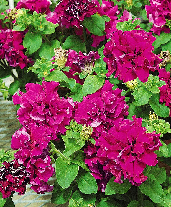 В эту группу можно смело отнести как многоцветковые, так и крупноцветковые петунии, но все они обязательно отличаются своей махровостью - цветки состоят не из 5, а из большего количества лепестков. Особую пышность имеют цветки с лепестками волнистой формы и бархатистыми краями. Разнообразная окраска махровых петуний может быть однотонной или с различными вкраплениями в виде цветовых пятен, прожилок или каймы, проходящей по краю лепестков.
