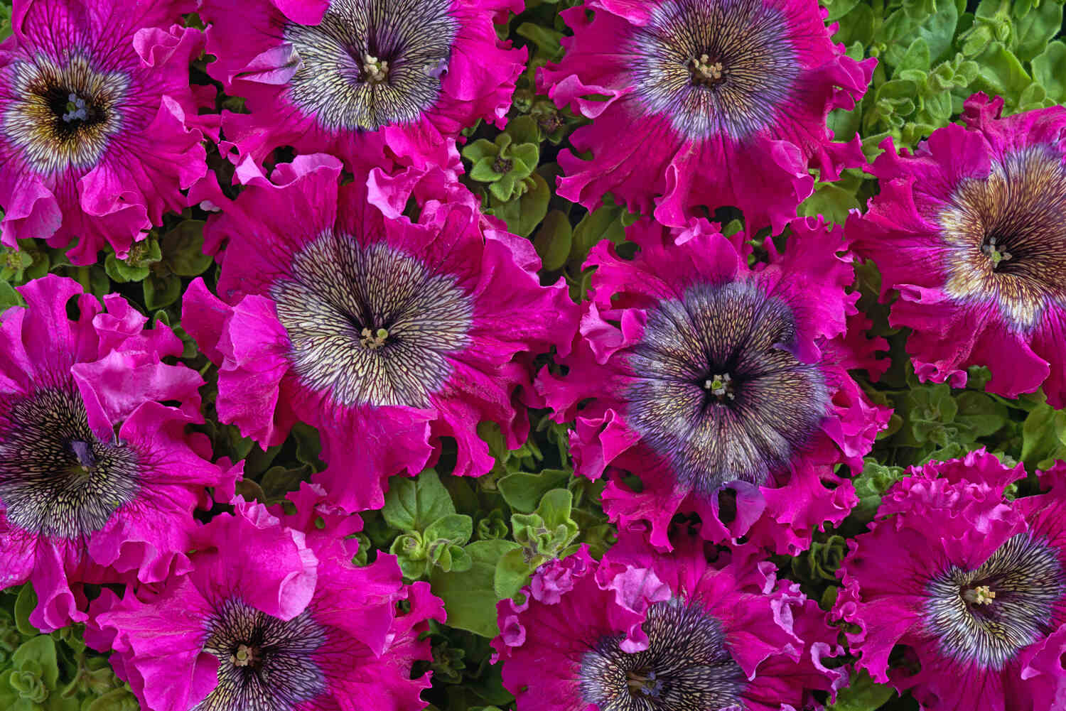 УХОД ЗА ПЕТУНИЕЙ В ГРУНТЕ. Уход за петунией в грунте заключается в регулярных умеренных поливах. В прополках и рыхлении она нуждается до того момента, пока она не заполнит собой сплошным ковром весь отведенный ей участок. Отцветшие цветки нужно своевременно удалять и за сезон несколько раз провести стрижку растений, после каждой стрижки петуния порадует вас вновь обильным кущением и цветением. Подкормки петунии, растущей в грунте в цветниках, нужны раз в 20 -30 дней любым минеральным комплексом для цветочных культур, предпочтительнее кормить по листу. Для петунии в клумбах с ограниченным объемом грунта, например клумба в шине, питание дают раз в 10 -14 дней. Для петуний, высаженных в небольшие кашпо или цветочные горшки, питание дают раз в 7 дней. Объем грунта в цветочном кашпо слишком мал, что бы надолго обеспечить обильное цветение без подкормок. Ампельные петунии любят покушать чаще всех, их кормят раз в 5 дней.
