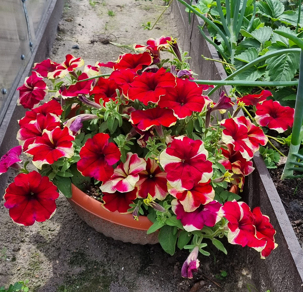 Цветки у этой петунии крупные, красивые. Куст сильно не разрастается. Во время дождя лучше убирать под навес.