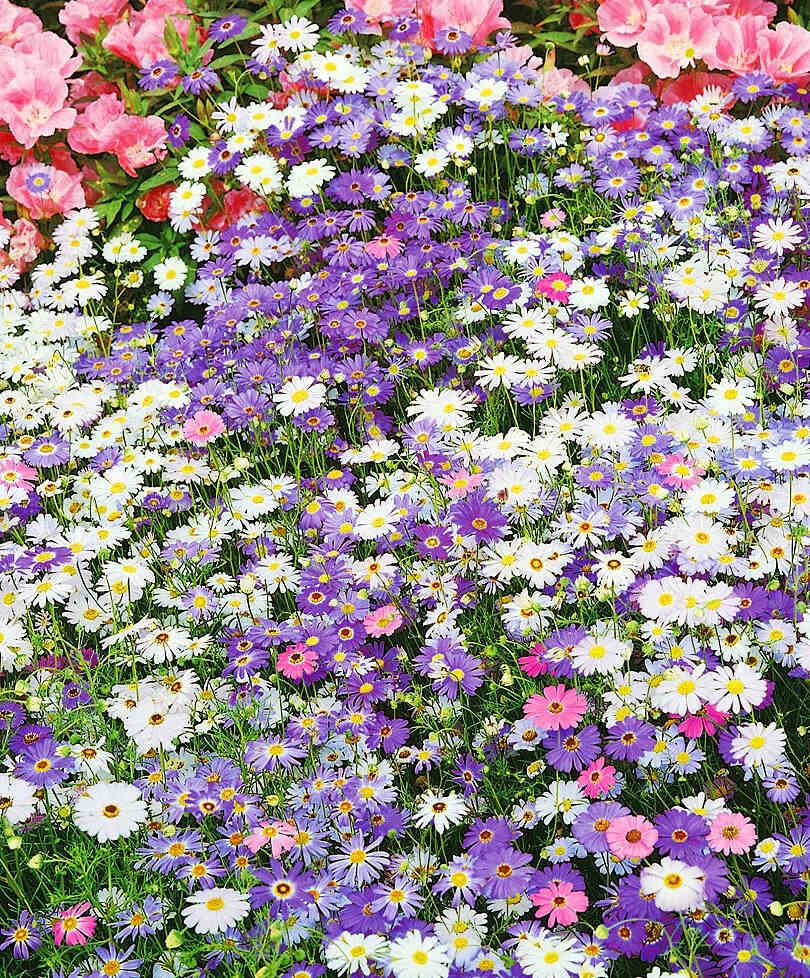 Радостная летняя полянка из многочисленных ромашковидных соцветий, до 3-4 см в диаметре с легким приятным ароматом. С начала лета и практически до первых заморозков цветет нежными розовыми, белыми и голубыми цветами. Листва светло-зеленая, перьевидная. Неприхотлива и засухоустойчива.