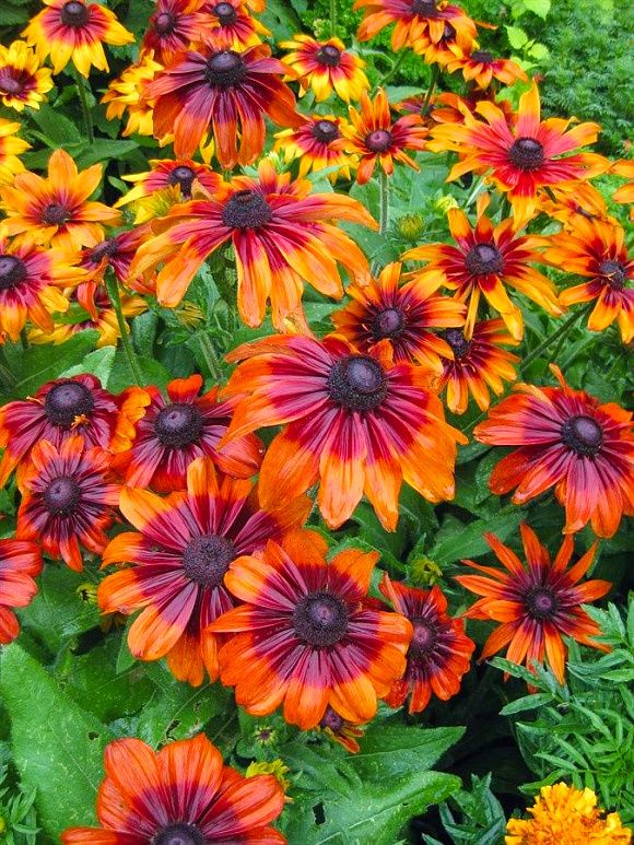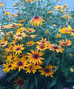 УХОД ЗА РУДБЕКИЕЙ В ГРУНТЕ. Уход за рудбекией заключается в прополке в первое время после высадки и рыхлении, в регулярных поливах. В дальнейшем рудбекия разрастается и уже ни рыхления, ни прополки ей не нужны и не представляются возможными. Подкармливать ее нужно раз в 14 – 20 дней и предпочтение нужно отдать фосфорно-калийным комплексам, в которых количество азота всегда меньше, чем количество фосфора и калия. Цветов она образует очень много и для лучшего образования бутов и обильного цветения ее необходимо обеспечить калием и фосфором, ну и, разумеется, микроэлементами. Питание вносят с поливами и по листу, сочетая корневые и внекорневые подкормки. Без подкормок цветки рудбекии мельчают, но декоративность она не теряет при этом. Осенью не вырывайте корневища рудбекии из цветника, если нам повезет и зима будет не слишком лютой, то весной от корневища рудбекии пойдут в рост молоденькие побеги.