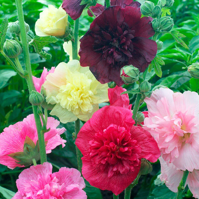 Шток-розу в просторечии называют мальвой. Она всегда была двулетним растением, но селекционеры вывели однолетние мальвы.