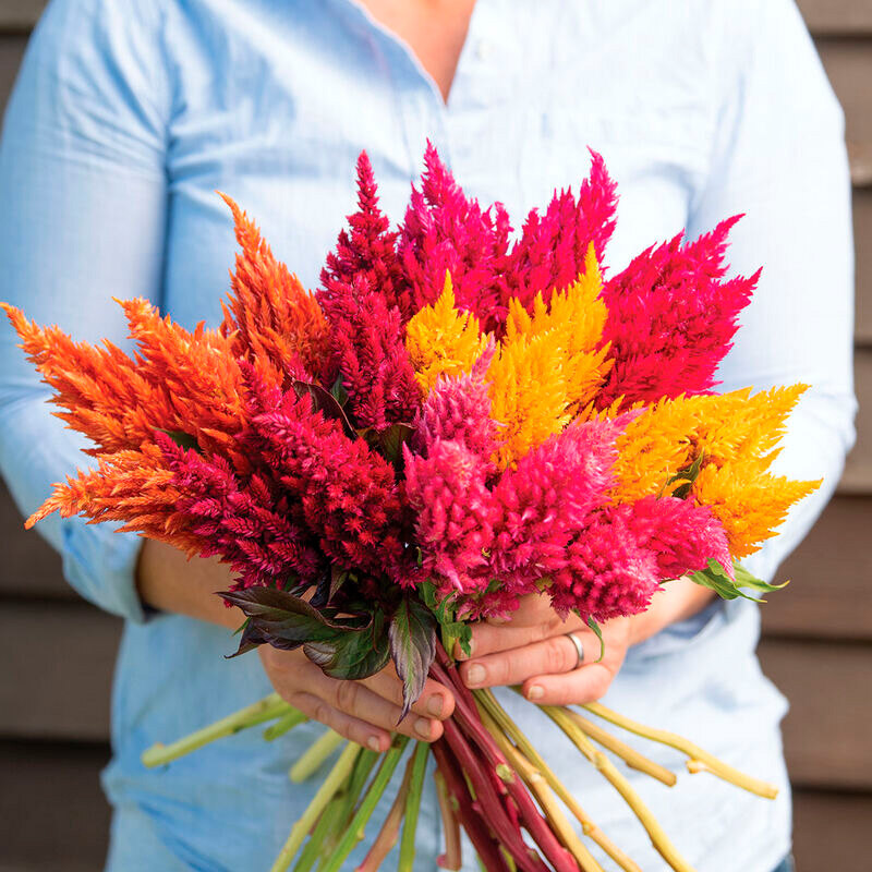 Целозия Красное перо, Золотое перо, Оранжевое перо, Темный взгляд красный и розовый, Глориус - отлично подходят на срезку, великолепно смотрятся в букетах и долго живут в вазах.
