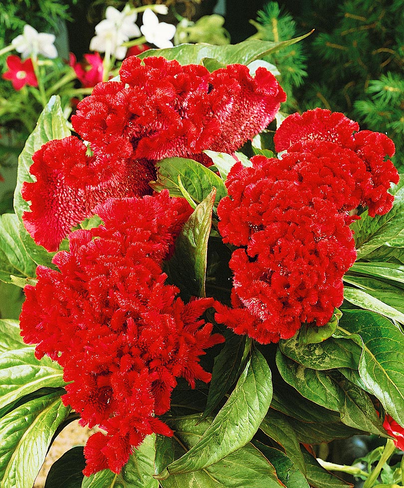 Целозия Тореадор с соцветиями в виде волнистых гребней из сросшихся побегов, как бархатные гребешки молодого петушка, великолепно смотрится и как горшечная культура, и как бордюрное оформление цветника, и как часть цветочной композиции летней клумбы.