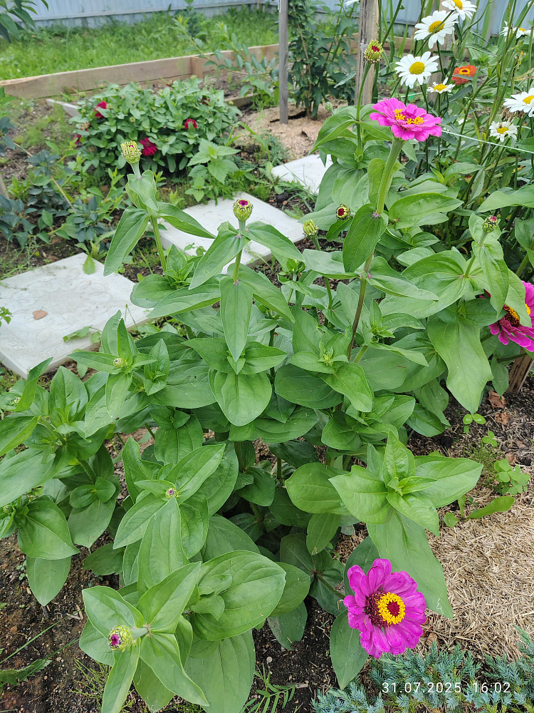 Циния, или майорчик, – любимый цветок наших мам и бабушек. В хорошее солнечное тёплое лето из середины цветка вдруг начинает расти новый цветонос и распускается «второй ярус». Какой ещё цветок способен на такой фокус!