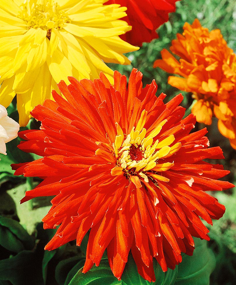 Абсолютно потрясающие цинии! Высокие, крепкие растения. Огромные, до 15 см в диаметре, цветы торжествуют на длинных, прочных