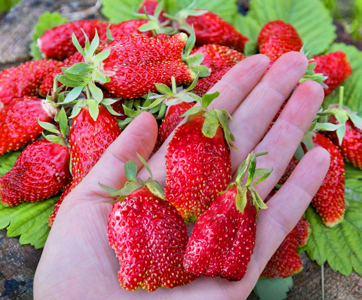 Сразу после окончания сбора летнего урожая у ремонтантной земляники скашивают все листья. Этот агроприём усилит повторное образование цветоносов и будет способствовать повышению урожайности земляничных кустов.
